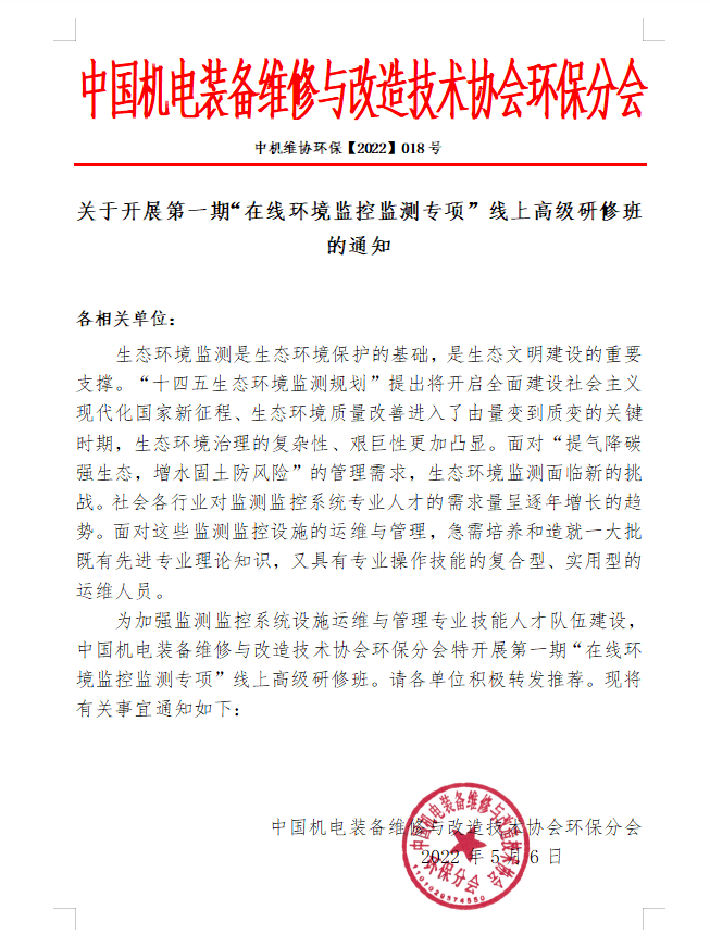 關(guān)于開(kāi)展第一期“在線環(huán)境監(jiān)控監(jiān)測(cè)專(zhuān)項(xiàng)”線上高級(jí)研修班的通知!